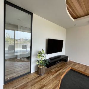 オーナーズショットが届きました!ご紹介いたします。玄関ニッチにお気に入りのポストカードとフレグランス。おもてなしの空間を演出されておられます。リビングは天井までのガラスのハイドア!&壁掛けTVに折上げ天井。クリスタルな照明は影の陰影も楽しめますね。オンリーワンに囲まれて楽しんでおられるご様子。有難うございました。